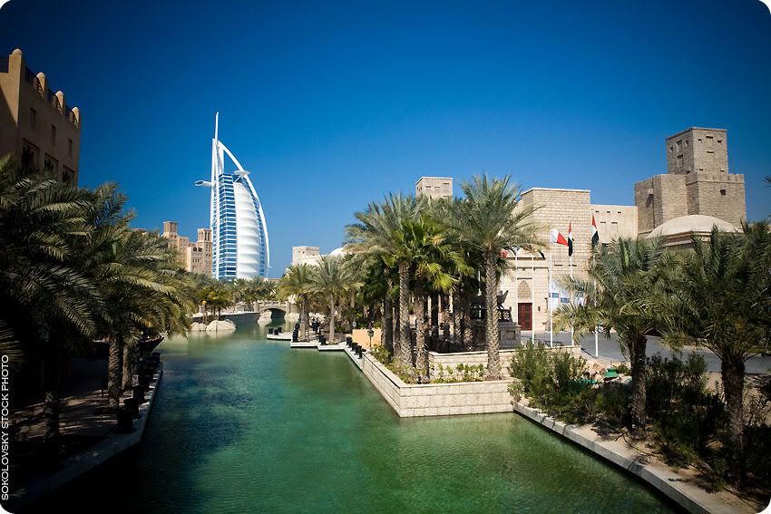 На заднем плане - самый высокий в мире отель Burj Al Arab (321 м кажется).