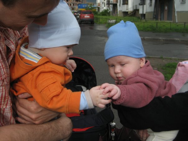 Юль, прям завидую вашим пупсам. А мой Тимоша и не видел своих ровесников. Только в поликлинике мимо бегающих детей