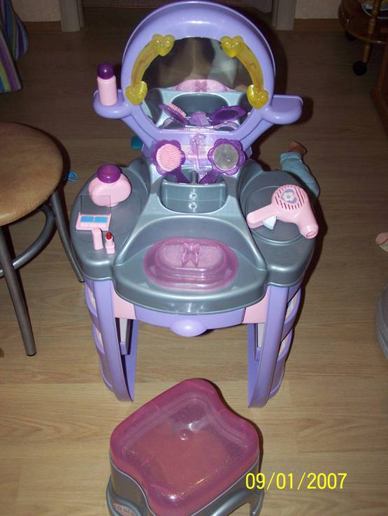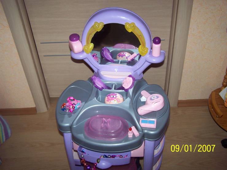 вот наша парикмахерская , со светом, в темноте хорошо светит, как ночник.очень дочке понравилась. ну а мне тем более, она сделана из экологически чистых материалов, и очень прочная