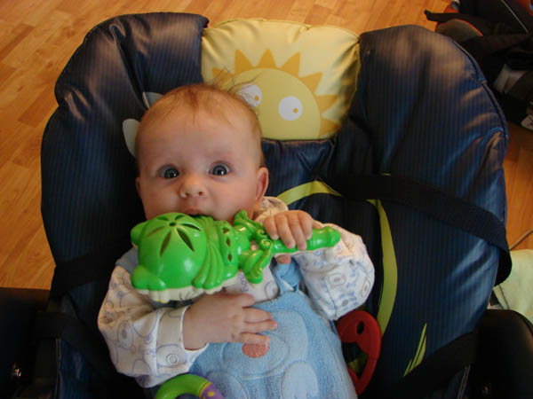 и Научилась держать огромную игрушку и даже пыталась ее в рот затолкать. |