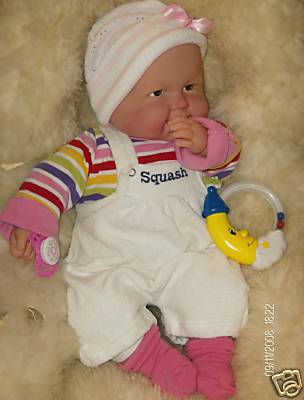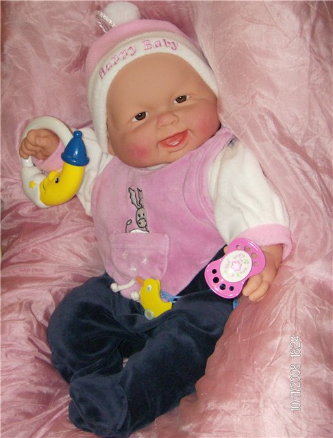 девочки, знакомая моя (немка) всю жизнь собирает куклы , часто продаёт и покупает.кто хочет уникальную авторскую куклу для своей малышки (или для себя?)?Я посмотрела некоторых , что она прямо сейчас выставила на продажу.Посмотрите какой лапка, как живой!Он умеет смеятся, как настоящий ребёнок, если надовить на животик (требуются батарейки).Ростом малыш 50 см и весом полкило, он мягкий (тряпочный), ручки, ножки ,головка виниловые,абсолютно новый.Стоит 62 евро +пересылка, конечно.Она таких три сейчас продаёт.Это вам не ББ, который у каждого второго!Вот первый: