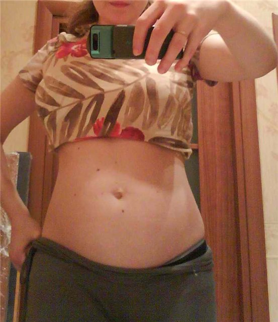 Я когда лежу, вроде почти не видно живота, а когда стоишь зато сразу такой мячик :-)