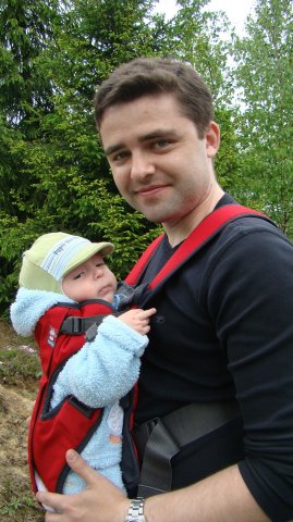 вот как мы гуляем с папой! и пальчик то всем показали, мол не трогать нас, мы серъезные ребята!!!