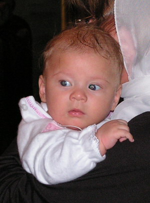 ![]() ![]() ![]() Я как всегда наскоком! Бегом наискосок почитала и отчитываюсь за прошедшие дни: ![]() За это время мы ничего не научились делать нового, зато не разучились делать все старое - все также гулим, улыбаемся, хватаем мать за волосы и нос, мама морщится и ругается - деть смеется! Любим глазеть на мобиль и прыгающую вокруг сестру, улыбаемся изредка мелькающему папе и всем прочим членам семьи. Но я-то вижу, что все равно мне она улыбается и радуется больше всех ![]() А еще у нас в субботу был большой праздник - мы покрестили Сашу! ![]() Все прошло очень хорошо, она совсем не плакала, тока чуть-чуть, когда в купель окунали, а потом сразу успокоилась, причем она все время не спала, а сидела у крестных на руках и глазела по сторонам Потом нам надарили подарков, и мы отметили все это дело с салатиками и тортиком! В общем, я теперь счастливая-счастливая, воть ![]() А вот мой зайчик! |