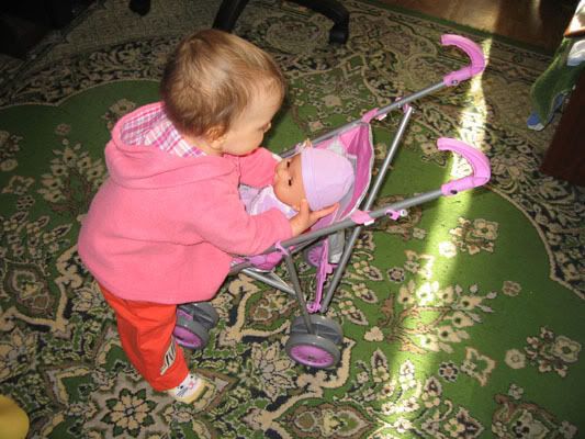и у нас такая же колясочка, лежачую коляску Поля как то игнорирует, а эту маленькую оооочень любит, хотя покупали для улицы, каждоу утро начинается с выгула медведя в этой коляске