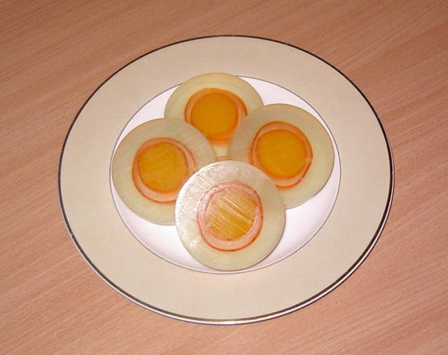 Оранжевое - апельсин с корицей.Внутри засушенный кружочек апельсина, но его стало не видно Перелила масла в прозрачную основу.Рыже-зеленое - мята с крапивой + апельсин с корицей и овсяными хлопьями ![]() |