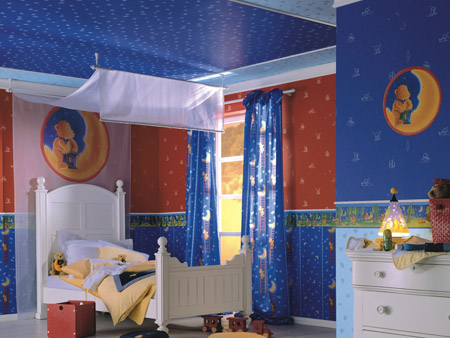 Приходите в отдел обоев, берете каталог с детскими обоями и начинаете смотреть ![]() Обычно во всех них есть примеры оформления интерьеров с конкретно этими обоями ![]() Ну например... У нас желтенькие с жучками |