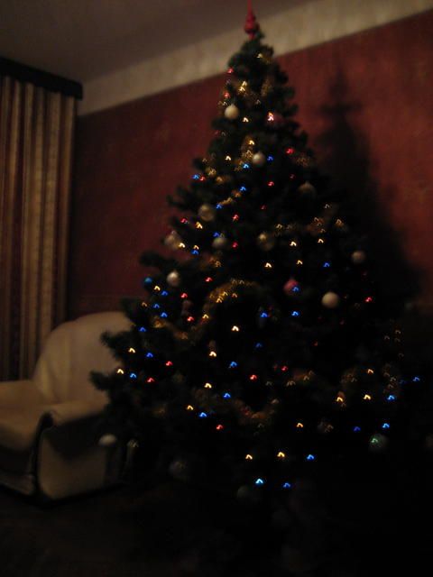 Что-то качество фотографии не очень... Но елка большая - в кадр не помещается... |