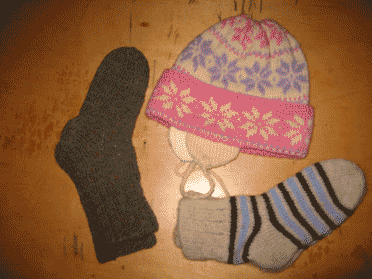 И шапочка и носки примерно на 5-6 лет. Нам 4 - велико. Носки и шапка - шерсть, поэтому немного колятся. Носки новые. |