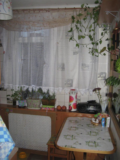 хочу и я похвастаться своей крохотной кухонькой!!!! мебель кухоннная не совсем в моем вкусе---но она нулевая осталась от предыдущих хозяев. и тк ремонт предстоял капитальнейший во всей квартире, то мы решили хоть на меблю для кухни пока не тратьиться.... Дырочку