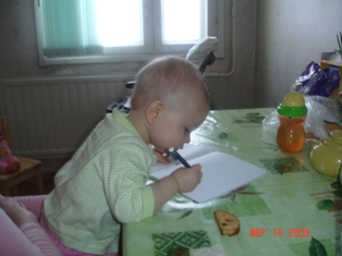да, Сашунька,сходство определенно есть.Это вы как умудрились письма писать?а ест ложкой сама?