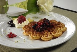Они были не сладкие, а сверху клали начинки.Самая вкусная-шарик мороженного и соус из свежих ягод. Но были еще с сыром ветчиной и т.д Есть надо ножом и вилкой.Если у вас для бельгийских, то рецепт теста там,думаю другой.А где Вы такую вафельницу покупали? |