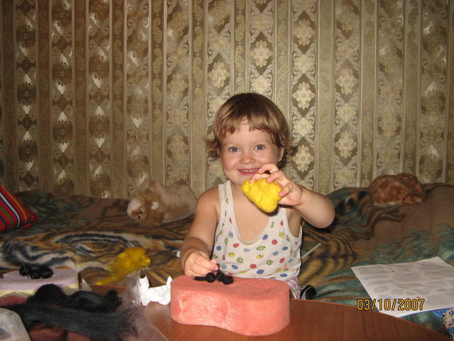 ![]() ![]() Эту фантазию мы назвали - " Тоска по морю". Делала на 99 % сама, я чуть-чуть была ассистентом. Еще мы с ней прошли мастер-класс по валянию игрушек из шерсти. Очень давольны. НА фото машинку еще без колес ( они рядом лежат), а сейчас идем на занятия по глине. |