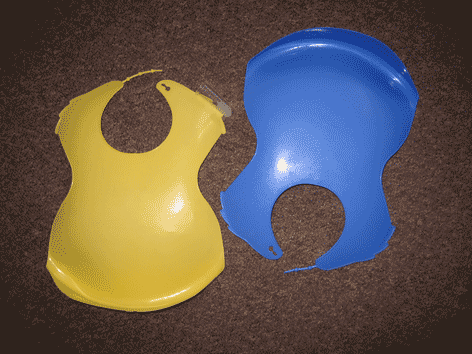 Отдам два пластиковых нагрудника, б/у. Застежка короткая, на одном 4 см, на другом 5.5 (доча отгрызла