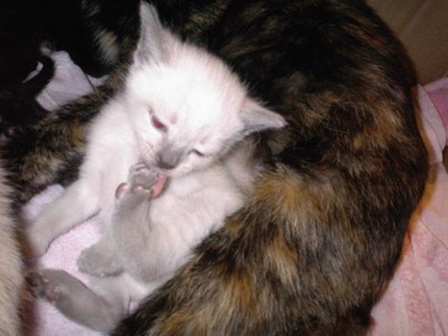 А вот наш будущий сыночек. Говорят, что бабушка у него была сиамкой, ой простите, тайкой. Мама обычная кошечка-черепашка. А наш хоть мордочка и простецкая, но по окрасу должен получиться таец. Как вы думаете?