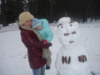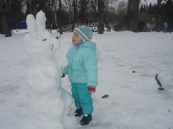 Вот наши фотки с 8 марта (Соня с подарком) и 9 марта (мы были на Масленице в Павловске, фоткались рядом с необычными снеговиками).