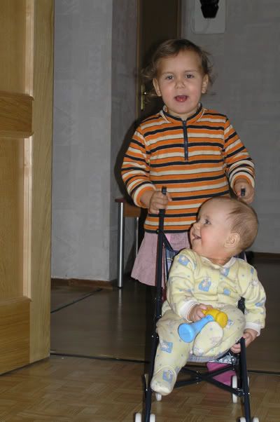 Младшая сестренка у нас настолько миниатюрная, что рассекает по дому вместе с сестрой в кукольной коляске ![]() |
