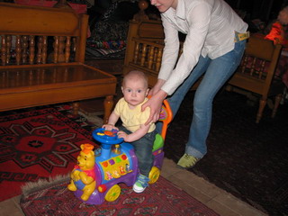 забыла еще сказать, что сразу по приезду на новое место, Степка был уложен спать на новом месте, но спать он отказался, а вместо этого встал на ножки - первый раз