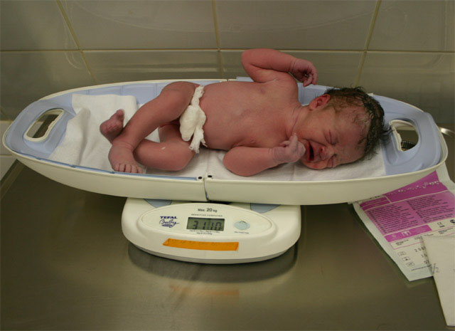 Наши фотки из роддома: Под лампой при осмотре неонатологом. На весах. В палате.