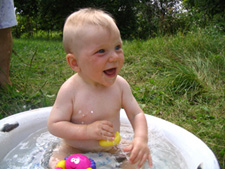 Вот и мы вернулись с дачи, кончилась моя ссылка ![]() ![]() ![]() Почитала вас тут немного и почувствовала себя матерью-ехидной на горшке Гошка не сидит, у нас и горшка-то нет , ползать по-прежнему не умеем , стоять тоже особо не хотим, разве что попрыгать у мамы на коленях, в ладушки не играем, пирамидки не собираем (пирамидки у нас тоже нет )...в общем одичали совсем ![]() Так что к достижением можно отнести, что едим по-прежнему все, что дают и побольше ![]() Сидит хорошо..еще достижение- может "здороваться"- протягивать правую руку для рукопожатия в щечку целует если хорошо попросить![]() ну и фоток немного, так сказать вести с полей ![]() |