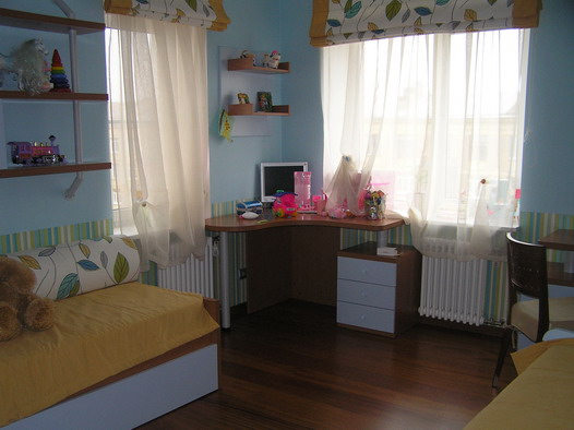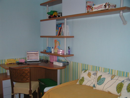 У нас еще и разница между детьми 7 лет. Сын в 3 классе, соответственно у него стол, компьютер, книг полно, да и игрушек тоже. Дочке сейчас 1год и 8 месяцев (планируем переселить через год) у нее свои интересы (игрушки совершенно другие естественно, полный шкаф нарядов и т.д.). Как же все это совместить? Чтоб один другому не мешал, да еще чтоб красиво и удобно получилось? Посоветуйте! |