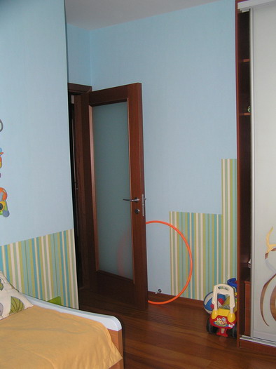 )Кстати по конфигурации ваша комната похожа на нашу. У нас тоже 2 окна. А где у вас хранятся игрушки, книжки и т.п.? Я так понимаю, что шкаф только для одежды. |