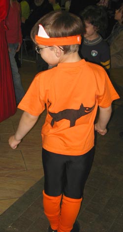 Нудны шортики и жилетка их меха, на носу можно гримом нарисовать собачий нос (точку и точечки вокруг), уши. Я думаю, если взять обычную шапку, по размеру головы Вашего сына, лёгкую, чтобы не особенно жарко было, можно на её основе сделать морду, и ушт меховые к ней пришить. Уши шьются чрезвычайно легко, честное слово Кроме того, можно использовать такую волосатую синтетическую нить, понимаете, что я имею в виду? Нить, с которой ещё свисают шерстинки довольно длинные, из такой нити кофты делают. Продаётся нить в рукодельных магазинах, там же, где и пряжа. Например, на углу Садовой и ул. Ломоносова. Хвост торчком - тоже можно сделать проволочный каркас и на него одеть более толстый меховой "футляр", а промежуток между проволочной основой и мехом набить ватой.![]() |
